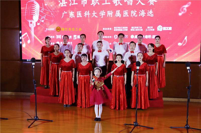 广东医科大学附属医院的大赛海选晚会标志着湛江市职工歌唱大赛正式启动。整个活动始终贯穿着热爱党、热爱祖国,歌颂党和国家的伟大成就的主旋律,展现了我市职工群众爱党爱国、向上向善、努力奋斗的良好精神风貌。通过前期甄选,当晚共有25组参赛选手相聚一堂,他们在舞台上用动听的旋律和飞扬的歌声唱响了经典颂歌。