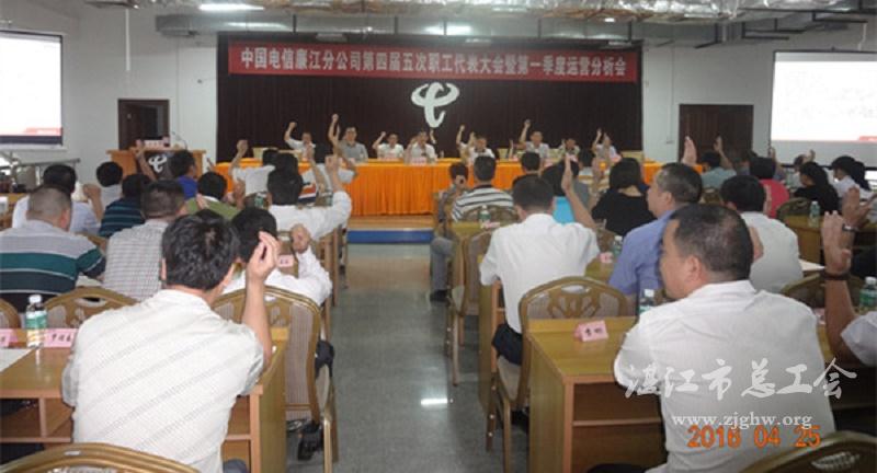 湛江市总工会网讯(图文/谢武奇 编辑/孙平)4月25日,中国电信廉江分公司召开四届五次职工代表大会,分公司经营班子、各部、中心经理、职工代表等80多人参加会议。会议分别听取并审议了公司总经理廖家汉、工会主席林荣举的工作报告,审议并通过了《关于2016年廉江分公司年终激励奖金发放方案》等方案。