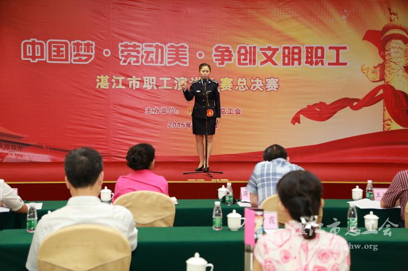 湛江市总工会网讯(文/陈少霞 图/陈培春 编辑/孙平)7月22日上午,湛江市“中国梦·劳动美·争创文明职工”演讲比赛总决赛在金海酒店六楼会议室举行。16名选手经过两个多月的比赛,从400多名参赛选手中脱颖而出,最终陈骏、张鹏、吴颖等3位选手获一等奖。