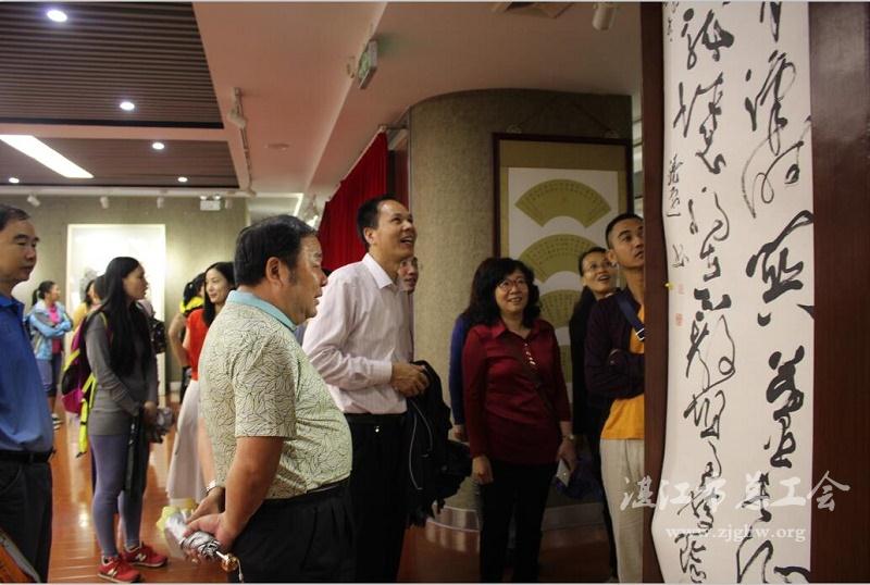 肇庆市总工会党组书记、常务副主席蓝达青向学员介绍肇庆市职工书画展情况