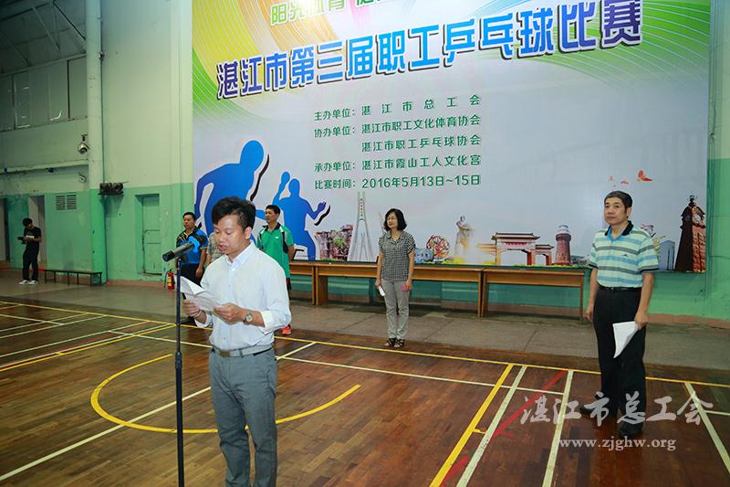 陈江泓为市第三届职工乒乓球比赛开幕致辞
