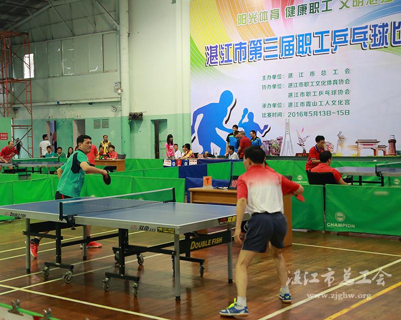 湛江市总工会网迅(图文/陈培春 编辑/孙平)5月13日至15日,湛江市总工会在霞山工人文化宫举办湛江市第三届职工乒乓球团体赛。市职工乒乓球协会会长、湖光岩风景区管理局局长何贵,市总工会党组成员、副主席陈江泓,市总工会党组成员、副主席董辉等领导出席比赛开幕式。