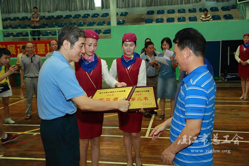 董辉为获得第三名的廉江市总工会代表队颁奖