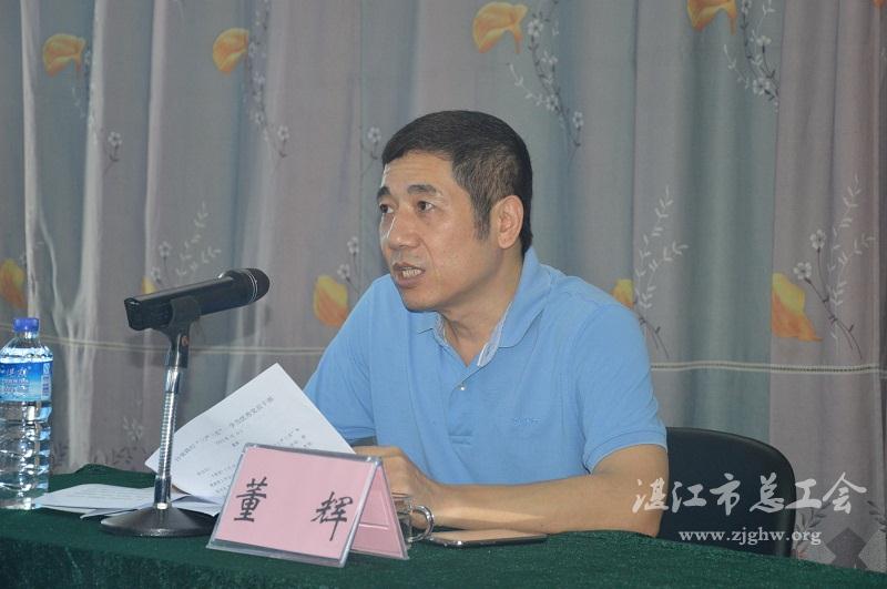 湛江市总工会网讯(图文/方如泉 编辑/孙平)6月26日,湛江市总工会党组成员、副主席董辉以《自觉践行“三严三实”,争当优秀党员干部》为主题,给分管的部室、直属事业单位党员干部讲党课,要求将“三严三实”贯彻到工会工作的全过程、贯穿于党员队伍建设始终,坚持“严”字当头,以进一步加强纪律建设为突破口,使专题教育活动在推动工会工作中得到提升、得到落实。
