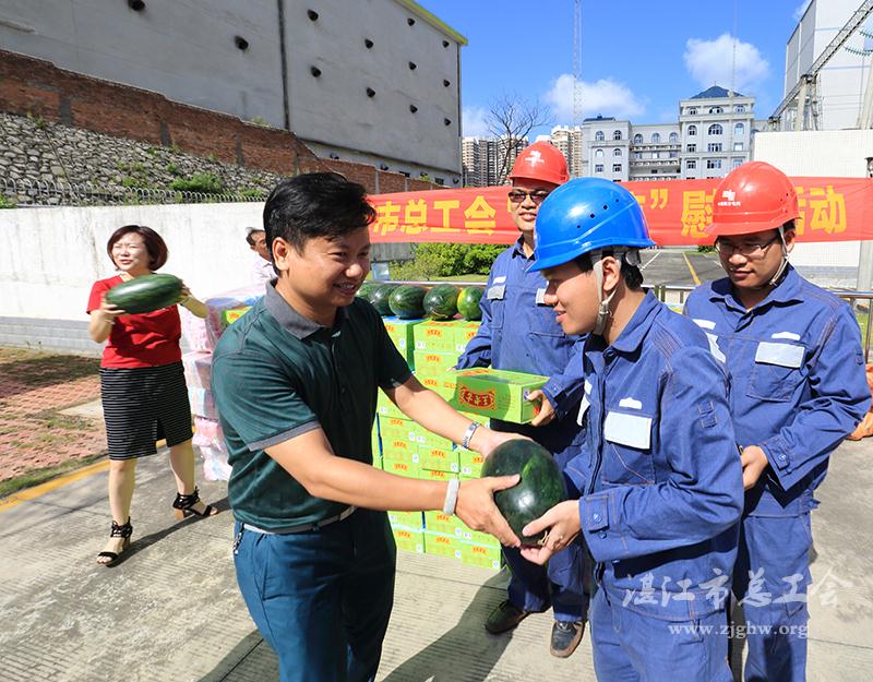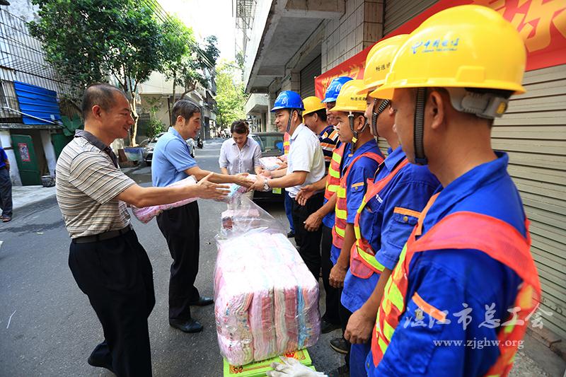 市总工会党组成员、副主席陈江泓为霞山供电局的一线工人送上清凉用品