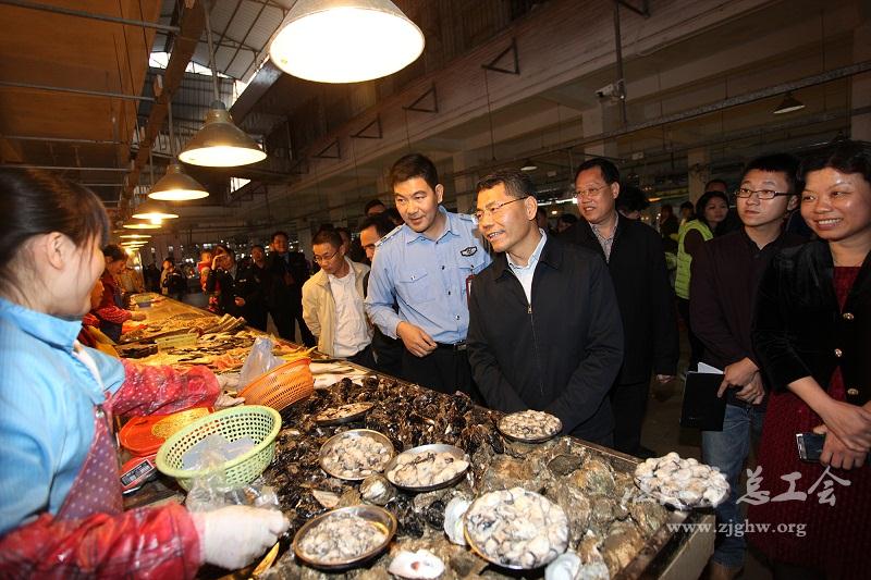 王中丙市长等到霞山工农市场慰问坚守岗位的一线职工(周海涛 摄)