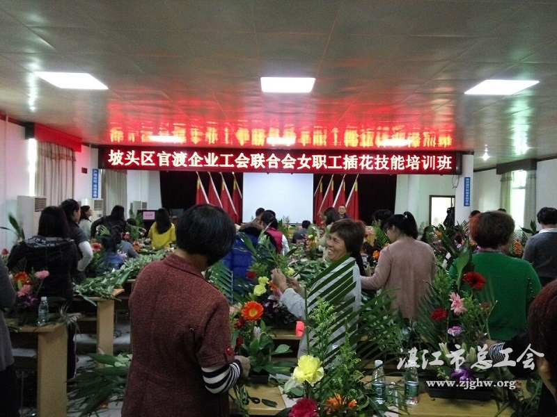 湛江市总工会网讯(图文/梁善愉 编辑/孙平)3月2日上午,湛江市总工会在官渡企业工联会举办女职工插花技能培训班。市总工会党组成员、副调研员、女职委主任谢明春作开班动员讲话, 16家来自官渡企业工联会成员企业的70名女职工参加培训。