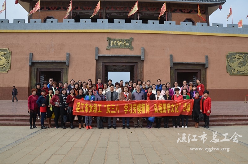 湛江市总工会网讯(图文/孙平)3月3日,湛江市总工会女职工委员会组织各级工会女工干部到廉江市、遂溪县开展 “庆三八,学习劳模精神,弘扬国学文化”活动。市总工会党组书记、常务副主席江少霞,市总工会党组成员、女职委主任谢明春和各单位女工干部等50多人参加活动。