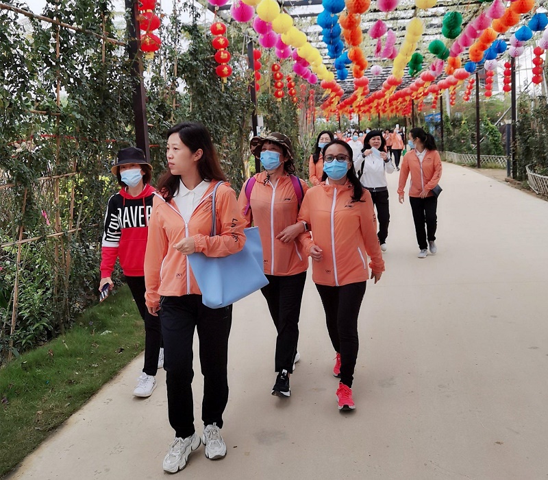 阳春三月,万物复苏。活动当天“阳光玫瑰园”花海盛放,花开婉妍,流光溢彩,处处透露着春天的蓬勃气息。女员工们沿着花海、果园小道,结伴而行,或拍照留念,或三五成群,一路上欢声悦耳,充分享受着大自然带来的秀丽风光。同时通过“快乐舞步”、“你说我猜”、“两人三足”等户外活动,呼吸大自然清新如洗的空气,充分展现了女员工自尊、自信、自立、自强的精神面貌和靓丽风采,培养了团结一致、密切配合、战胜困难的团队精神。