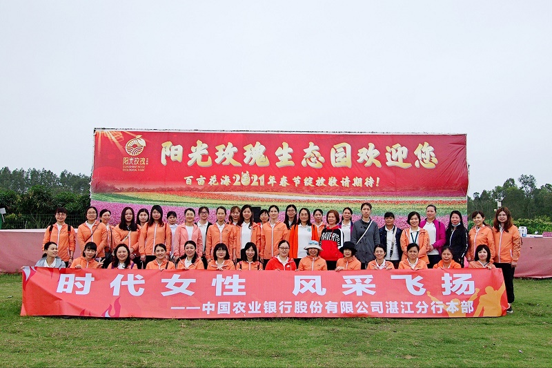 湛江市总工会网讯(图文\王朝华 编辑\黄嫩叶)3月7日,中国农业银行湛江分行组织本部女员工前往“阳光玫瑰园”开展以“时代女性 风采飞扬”为主题的庆祝“三八”国际劳动妇女节户外郊游活动。农行湛江分行副行长、工会主席程南珍参加活动,并代表分行党委向女员工们致以真挚的节日祝福和问候。