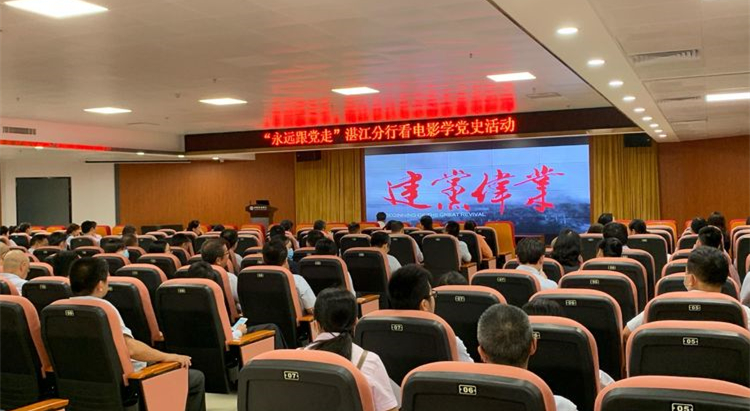 湛江市总工会网讯(图文\王朝华 编辑\黄嫩叶)4月19日,中国农业银行湛江分行组织本部员工开展“永远跟党走”学党史活动,观看电影《建党伟业》。