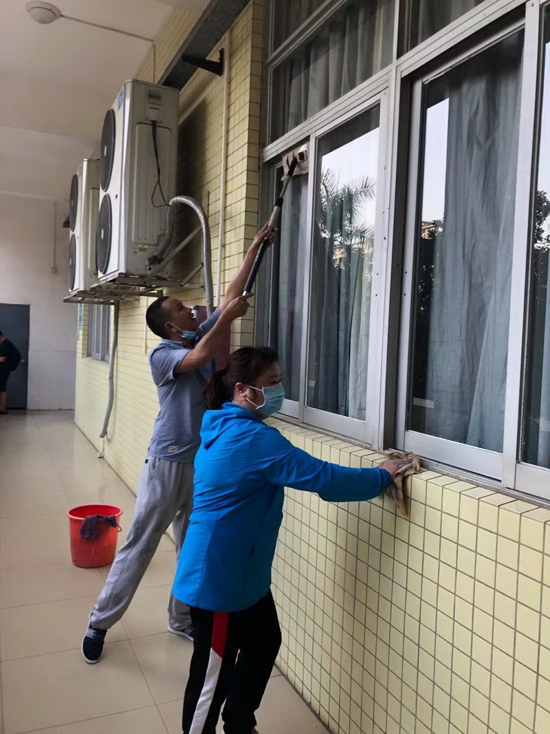 大家通力协作完成了教学楼区域的清扫工作,用劳动和汗水还广东医科大学一个干净、整洁和温馨的校园。谨以此献礼广东医科大学建校63周年校庆。看着自己的劳动成果,每位教职工脸上都露出了灿烂的笑容。