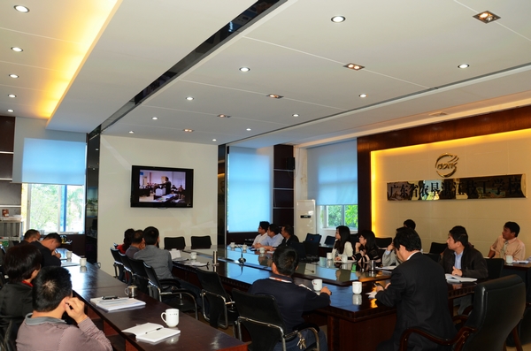 省农工商学校召开创业教育工作研讨会,图为与会人员在观看创业教育视频