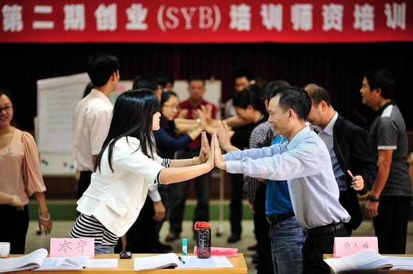 参加创业培训师资班的省农工商学校教师正在进行互动游戏