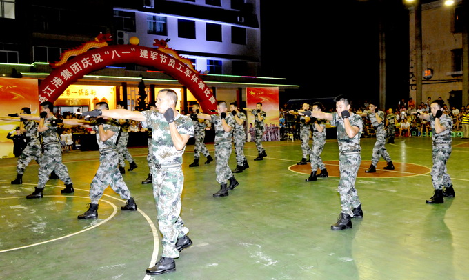 湛江市总工会网讯(图文/王敏 编辑/陈培春)为庆祝“八一”建军节,凝聚以退伍军人为主的青年员工队伍,激发他们在促进港口转型发展中继续发扬军人不怕苦、不怕累的顽强作风。7月30日晚,湛江港集团举办了庆“八一”员工军体拳比赛。