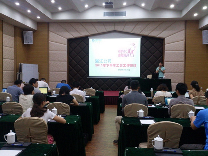 湛江市总工会网讯(图文/梁丹 编辑/陈培春)近日,湛江移动公司召开2013年下半年工会培训交流会议,来自各分公司工会分会的分会主席和工会联系人、各部门(中心)工会小组的工会小组长齐聚一堂,共同参加了工会管理培训,回顾分享2012年工会工作的精彩亮点。
