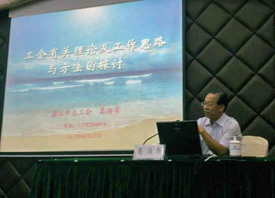 此外,为了加强工会管理工作,公司工会邀请湛江市总工会保障工作部部长葛海勇讲了一堂名为《工会有关法理及工作思路与方法的探讨》的培训课。葛部长从工会法理、工会维权工作、工会工作思路与方法、工会基础工作四个方面讲述了如何更好地开展工会工作。作为一名长期从事工会工作的专职人员,葛部长强调“工会就是一种政治参与制度;工会是中国共产党执政的阶级基础和群众基础;工会就是要教育自己的会员群众学会从政治上解决问题”,必须把工会工作作为一项政治工作来开展,最主要的就是做人的工作、围绕人做工作。