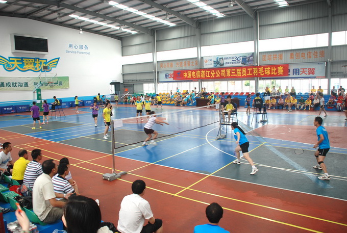 中国电信湛江分公司第三届职工羽毛球赛比赛现场