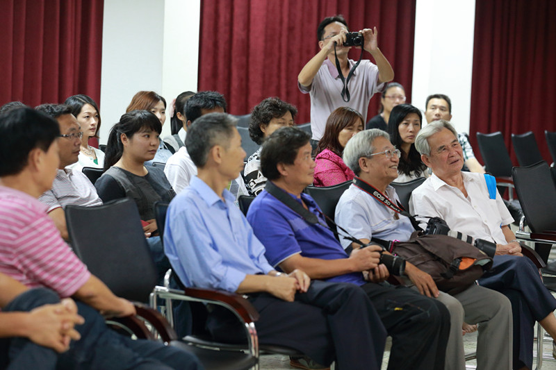 香港著名导演磁场强大,磁力不止于影视摄友 影视作为电影艺术和电视艺术的统称,是现代科学技术与艺术相结合的产物。它通过画面、声音、蒙太奇、故事情节等语言来传达与表现,拥有最大量的人群。当天出席讲座不止坡头区广文新局、南油职工文化站人员,不止于南油坡头影视专业和爱好者,据说霞山、赤坎区的朋友也越过海湾莅临聆听。林聪的讲座,吸引着不同年龄不同爱好者,有的为了一瞥林聪名人的风采从乡村而来,更多的来自城镇,为的是提升自我。南油图书馆二楼文化大讲堂座设不多,座席位不虚,近百听众在林聪声情并茂,肢体语言优美极富艺术感染下,不知不觉过度两个小时。