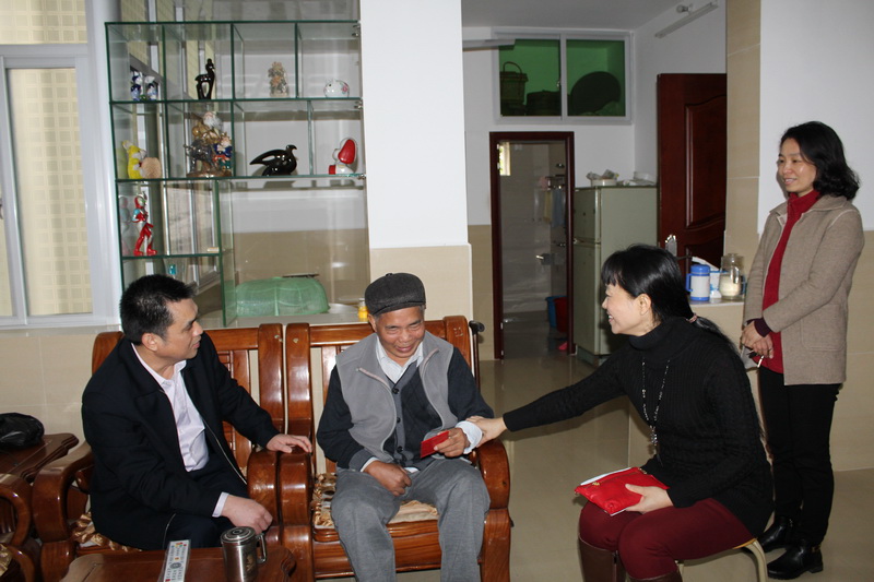 24日上午,由工会主席李小松带一组,来到医院宿舍区,代表医院党委对罗淑珍、陈莉、叶和光等困难职工、80岁以上老人等进行慰问,详细了解他们的家庭及身体状况,给他们送上慰问金和浓浓的节日祝福。