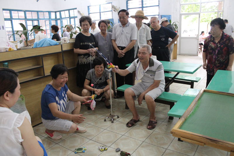 本次运动会设置了套圈、运乒乓球、钓鱼、夹波珠等适合老年人的比赛项目。赛场上,老同志们个个容光焕发、精神抖擞。你看,刚从美国回来的敖仕春主任也来参加我们的比赛。虽然他已年近80岁,腿脚不是很方便但并不影响他一丝不苟地完成比赛,坚强的他赢得大家热烈的掌声;钓上来个金龟、又钓上来个螃蟹,老阿姨们一起吆呵着好不热闹……一个个趣味横生的游戏,让老年人仿佛回到童年时期。他们心态很好,不求成绩,但求心情愉悦,重在参与。