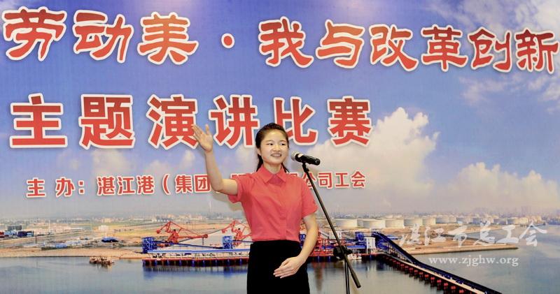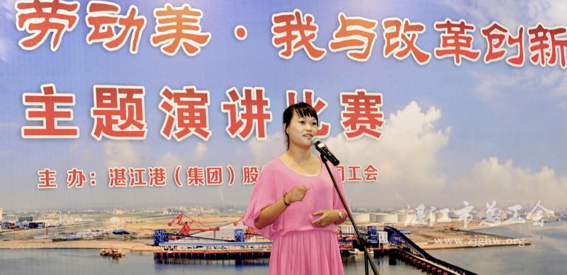 湛江市总工会网讯(图文/王敏 编辑/陈培春)“他充分发挥自己所长,利用工余或休息时间,成功完成了对输油臂的技术改造,在为 企业带来巨额效益的同时,也实现了他个人创新的梦想;一分公司研发的“非流动性物料吨袋灌包机”,物料适应性强,运行效率高,获得了国家专利和湛江市科技进步二等奖;我们三代人都演绎着同样一个梦想,那就是我们曾经和正在为之奉献青春、也是多少湛江港人矢志不渝追求的港口梦……”这是8月1 日,湛江港集团工会举办的“中国梦·劳动美·我与改革创新”主题演讲比赛上员工们讲述一线员工立足岗位无私奉献的感人事例,用真情赞颂劳动美!