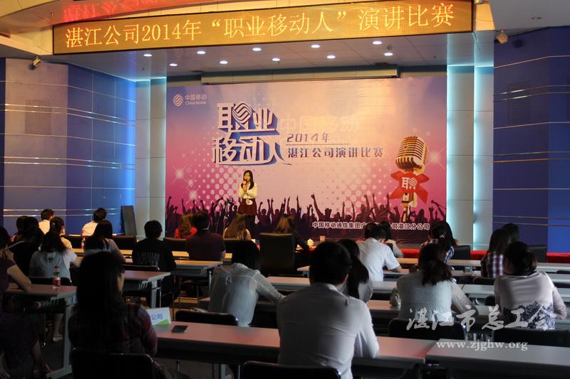 湛江市总工会网讯(图文/李文媛 编辑/陈培春)10月16日,为营造企业和谐健康的文化氛围,充分发挥核心价值观影响力,中国移动通信集团广东有限公司湛江分公司举办了2014年“职业移动人”演讲比赛,来自各分公司、部门(中心)的14名选手通过职业故事,职业心得,职业梦想的讲述,展现移动人的职业风采。