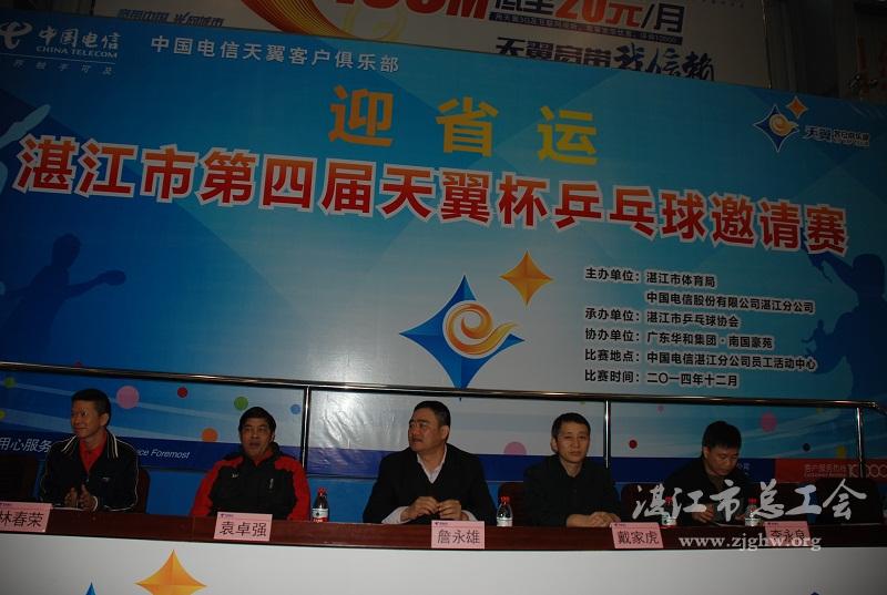 湛江市总工会网讯(图文/谢武奇 编辑/孙平)迎省运会,创文明城。12月19至21日,由市体育局和中国电信湛江分公司主办的湛江市第四届“天翼杯”乒乓球邀请赛隆重举行,来自市直机关及企事业单位等共32支代表队220名运动员参加比赛。