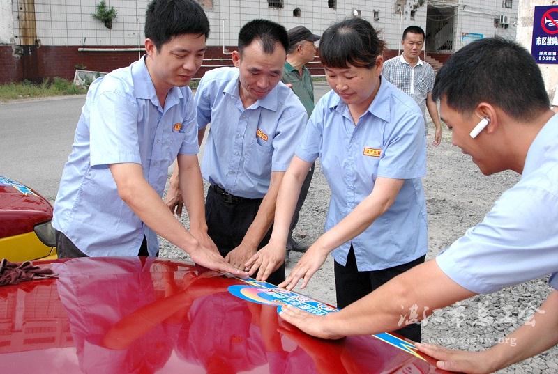 湛汽的哥的姐在帖装“爱心送考”标识
