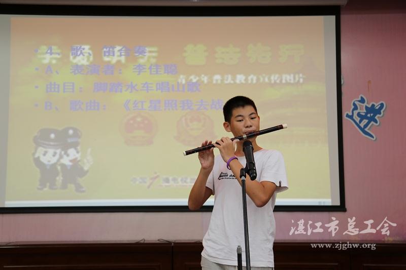 接着围绕“三爱”主题,青年团员和职工子弟们共同表演了诗歌朗诵、笛子独奏、歌笛合奏、电子琴独奏等节目,同时邀请了职工子弟王国雄、林雨萍、蔡抒烨、周广宇等围绕纪念抗日战争胜利七十周年主题进现场挥毫表演。一个个精彩的节目将活动一次次推向了高潮,让现场的子弟们度过了愉快的周未。