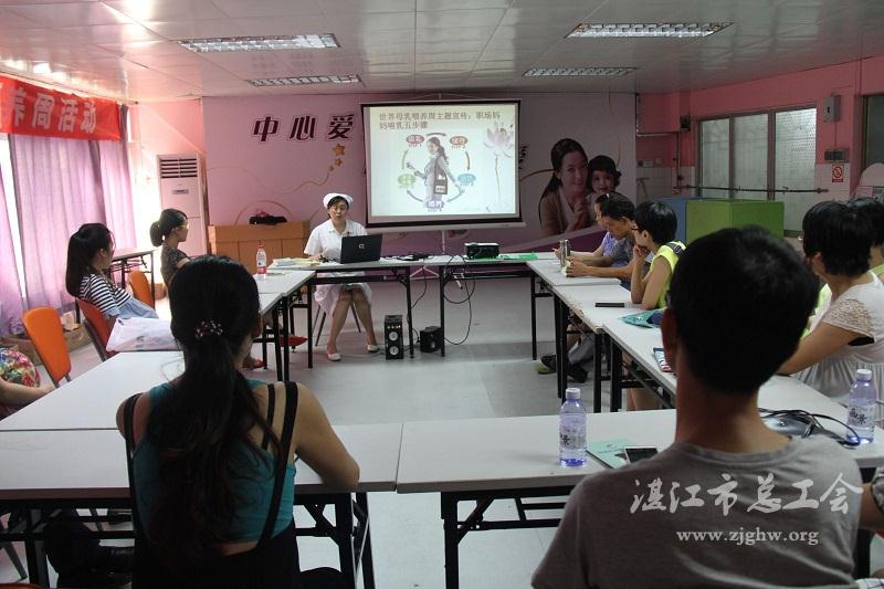 湛江市总工会网讯(图文/关秀莲 编辑/孙平)8月8日上午,湛江中心人民医院妇产科、女工委、宣教办在医院孕妇学校联合开展了2015年“世界母乳喂养周”主题宣传活动,旨在促进社会和公众对母乳喂养重要性的正确认识和支持母乳喂养。