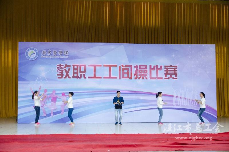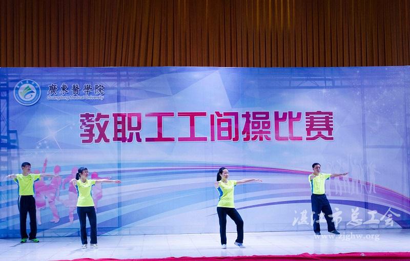 湛江市总工会网讯(文/李成龙 张琳 陈颖芝 图/梁丽霞 朱安然)11月13日晚,广东医学院东莞校区首届教职工工间操比赛在东莞校区15栋文化广场隆重举行。校党委书记江文富莅临现场观看比赛。最终,信息工程学院工会、第二临床医学院工会获得三等奖,基础医学院工会获得二等奖,一等奖由东莞校区机关工会、护理学院工会共同分享。