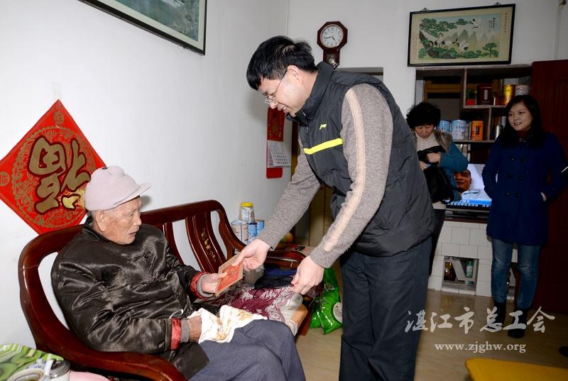 湛江市总工会网讯(图文/苏晓因 编辑/孙平)2月1日,湛江汽车运输集团有限公司总经理吴定义、副总经理麦泉、党委副书记刘付华基带领公司党群办、工会、老干科等人员开展春节前送温暖活动,给公司抗战老同志、老劳模、困难职工送上诚挚的关怀和春节的祝福。