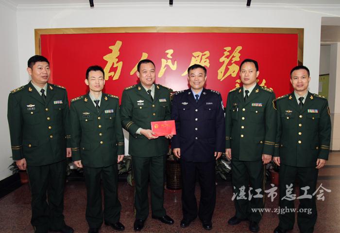 湛江市总工会网讯(图文/方芸 编辑/孙平)2月18日,受副市长、公安局长黄勇武的委托,市公安局党委委员、政治处主任、工会主席梁洪波在政治处副主任陈秋玉和韩晓光的陪同下,带领工会人员对“平川16”专项行动中表现突出的单位,特别是参与遂溪县“2.11”案件侦破工作的民警代表进行战时慰问。