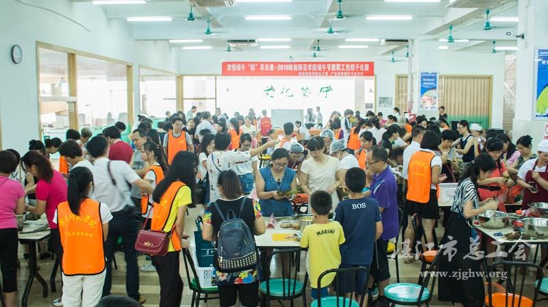湛江市总工会网讯(图文/彭玉莲 杨盘花 张楚茵 马胜男)6月5号下午,岭南师范学院女工委联合广东南粤银行寸金支行在鸿园二楼举办了端午节教职工包粽子比赛。本次比赛共有20支队伍报名参加,邀请了生科院烹饪专业系主任李锐、面点老师庞泽翀和饮食服务中心点心师刘晓平担任评委。学校工会常务副主席林艳萍出席活动并致辞。