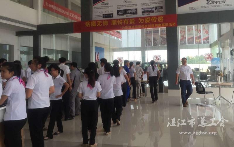 湛江市总工会网讯(图文/林丽斯 编辑/孙平)8月1日上午,湛江顺铃汽车销售服务有限公司全体员工为陈境浩的母亲捐款献爱心,共筹得捐款一万多元。