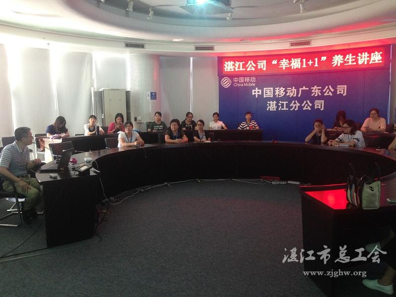 湛江市总工会网讯(图文/李文媛 编辑/孙平)8月5日下午,湛江移动公司工会举办“幸福1+1”养生讲座,来自市公司、分公司共40余名员工参加。