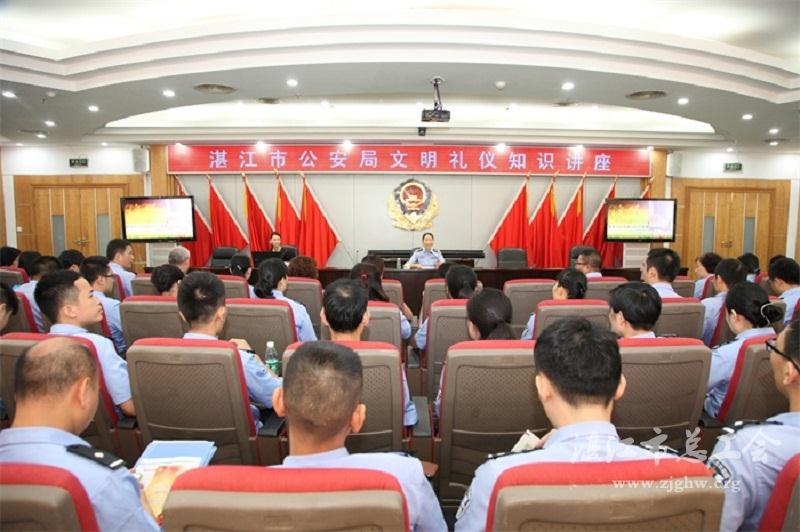 湛江市总工会网讯(图文/吴明辉 编辑/孙平)9月22日上午,湛江市公安局工会和女职工委员会举办了一场以文明礼仪为主题的知识讲座。市公安局机关各单位民警、协勤代表共240余人参加。讲座由市公安局政治处副主任陈红霞主持。