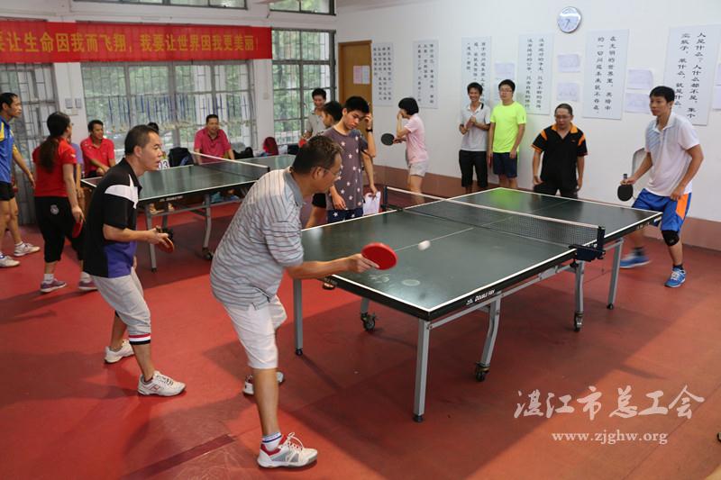 湛江市总工会网讯(文/姚伟红 图/杨丹 编辑/孙平)9月24日至25日,广东医科大学湛江校区离退休干部工作处活动室内传来阵阵加油和呐喊声,该校湛江校区教职工乒乓球比赛在这里展开激烈的角逐。比赛由学校工会举办,学校乒乓球协会协办,共有来自各二级工会分会的五支代表队、48名选手参加。