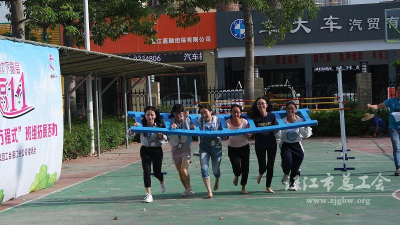 湛江市总工会网讯(图文/李文媛 编辑/孙平)10月9日,湛江移动公司“幸福1+1”活力下基层之幸福方程式班组拓展活动在市公司篮球场闹腾开锣。首场活动得到广大员工积极响应,市公司的10个班组80多名员工参与到妙趣横生的活动中。