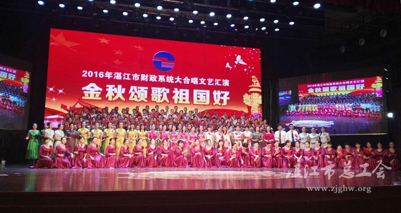 湛江市总工会网讯(图文/肖淞文 编辑/孙平)10月14日晚,湛江市财政系统在湛江影剧院举行“金秋颂歌祖国好”大合唱文艺汇演,湛江市及各县(市、区)财政局领导、嘉宾1000多人欢聚一堂,深情唱祖国,同心颂党恩,市总工会、市直工委、市金融局等单位的领导参加观看了汇演。