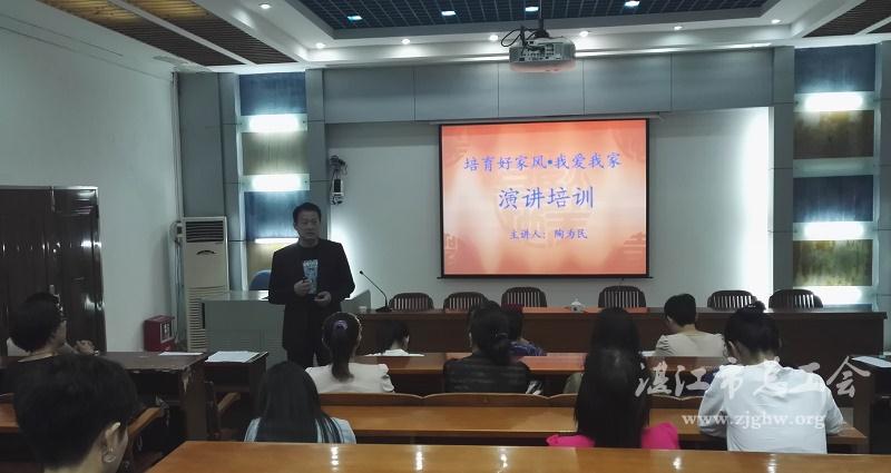 湛江市总工会网讯(图文/柯俊宇 编辑/孙平)11月9日下午,广东海洋大学工会女工委在霞山校区图书馆报告厅举办 “培育好家风•我爱我家”为主题的演讲培训班。校女工委员、部门工会女工委员、参加演讲比赛的选手及部门教职工代表参加培训。培训班由学校工会副主席、女工委主任吴少文主持。