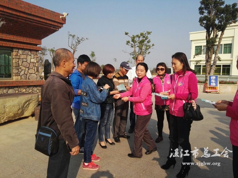 湛江市总工会网讯(图文/肖淞文 编辑/孙平)在喜迎“三八”国际妇女节来临之际,3月2日下午,市财政局组织巾帼志愿者服务队以及干部职工60多人,在工会主席、妇工委会主任罗红梅带领下,赴吴川塘缀镇明村开展主题为“反家庭暴力、促平安家园建设”宣传活动。