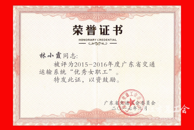 徐闻汽车运输总站乘务员林小霞被评为广东省交通运输系统“优秀女职工”