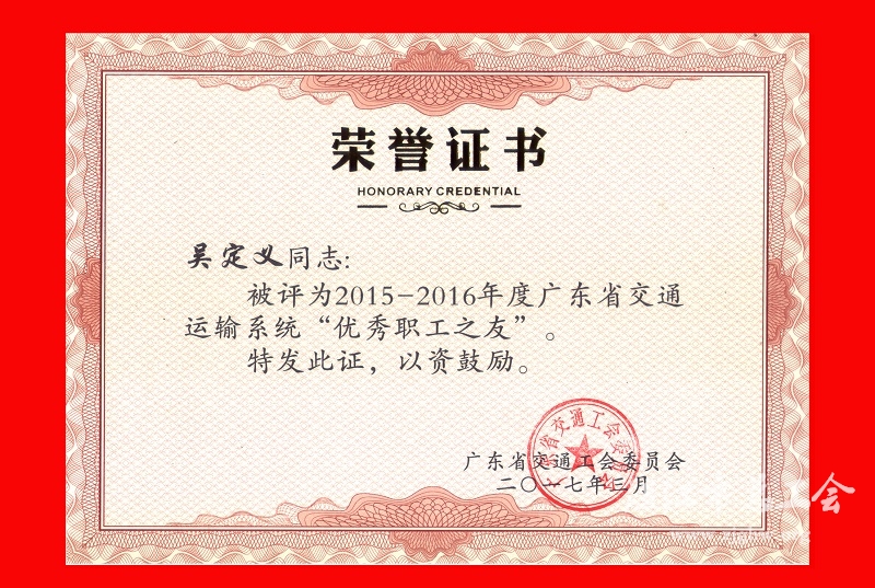 湛汽集团总经理吴定义被评为广东省交通运输系统“优秀职工之友”