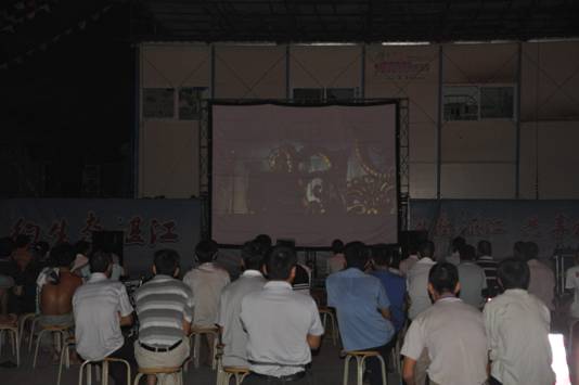 为使电影月活动顺利进行,集团义工大队的队员们在电影月活动前,就早早把所有影讯宣传单贴到各个工地,并于放影的每天晚上七点钟就把播放电影的设备、场地等一一准备好,以方便前来观看电影广大群众。