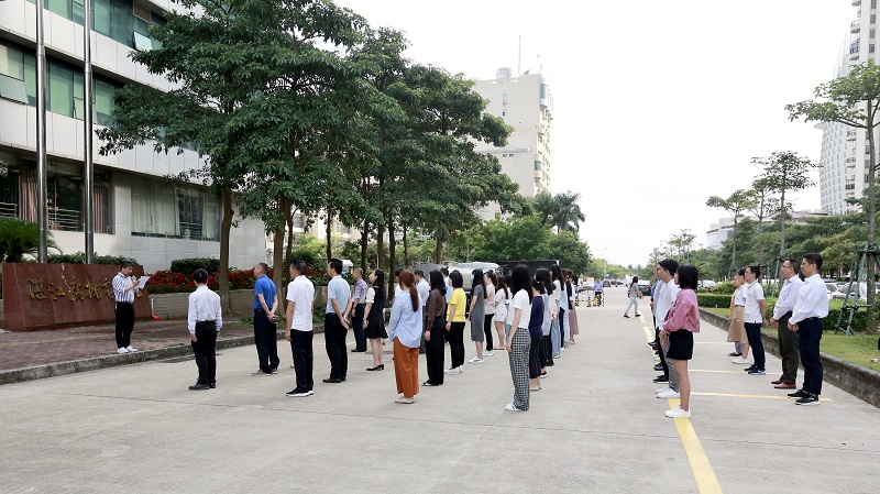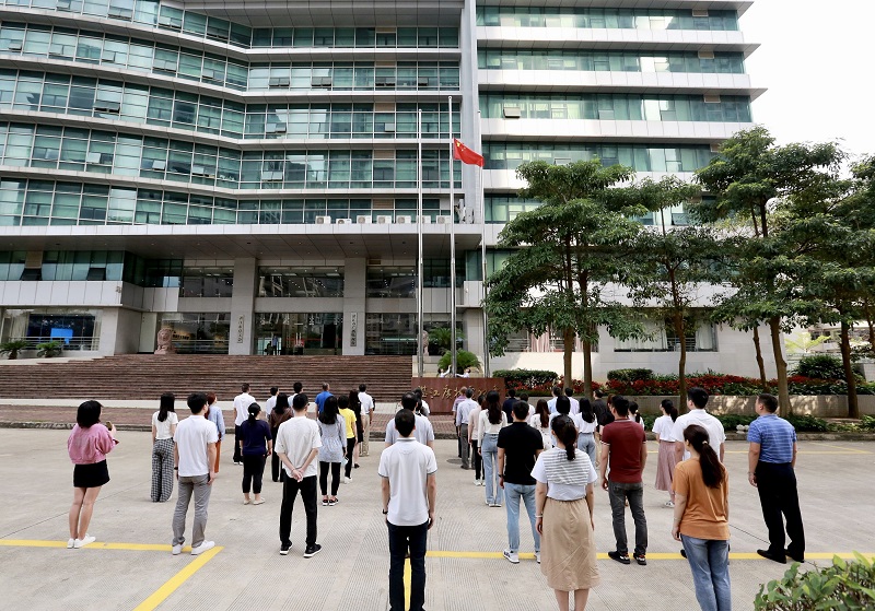伴随着雄壮激昂的国歌声,鲜艳的五星红旗冉冉升起,全体人员面向国旗庄严肃立,向国旗行注目礼,对伟大祖国致以崇高敬意和由衷祝福。