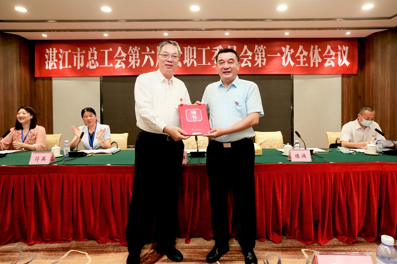 会上,湛江市人大常委会副主任、市总工会主席朱华雄为湛江市总工会党组书记、常务副主席陈端颁发“名誉主任”聘书,并为市总工会第五届女职工委员会离任委员代表颁发证书。广东省总工会女职工委员会黄珣部长发来贺信,对湛江市总工会女职委的工作充分肯定。