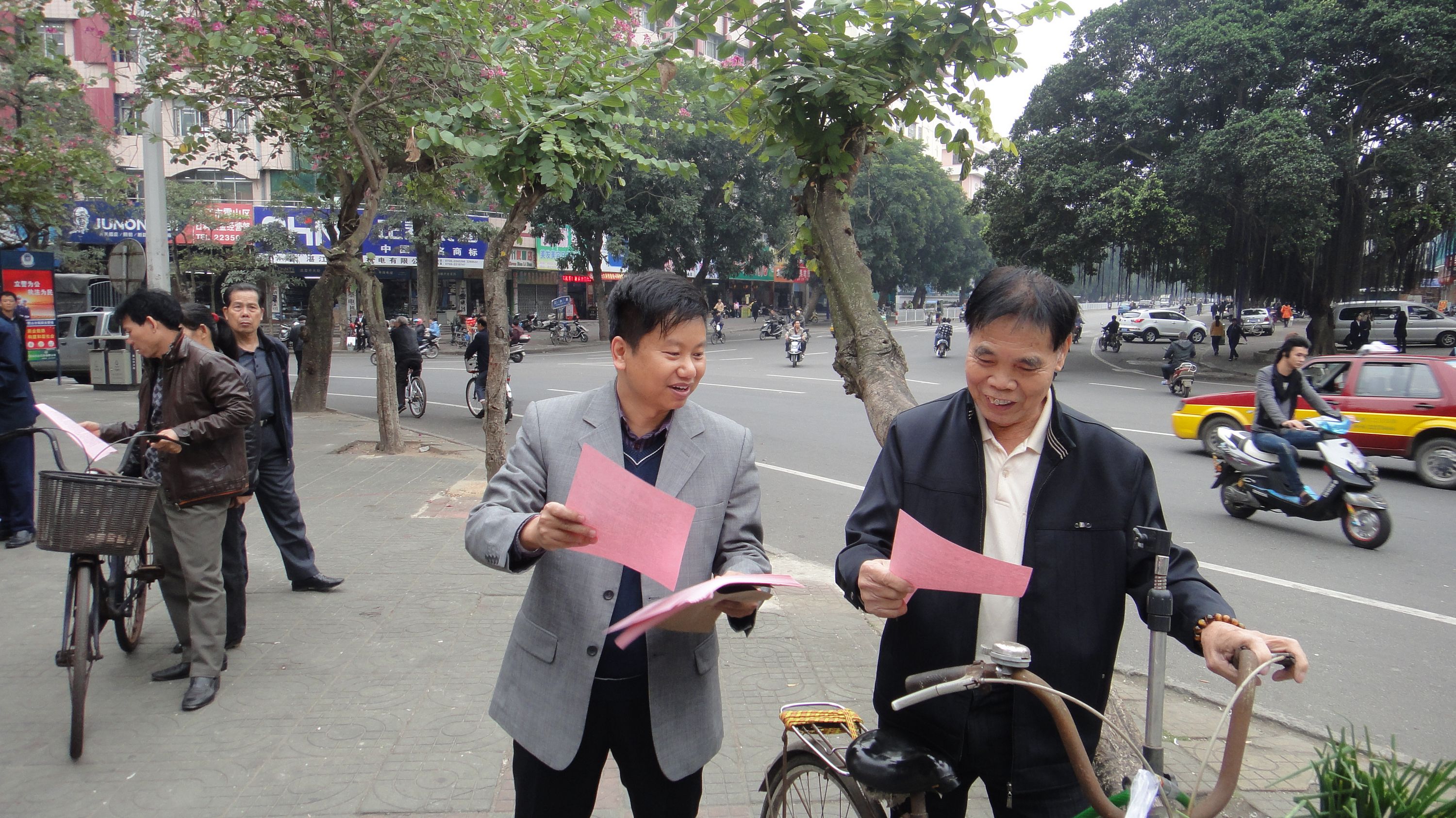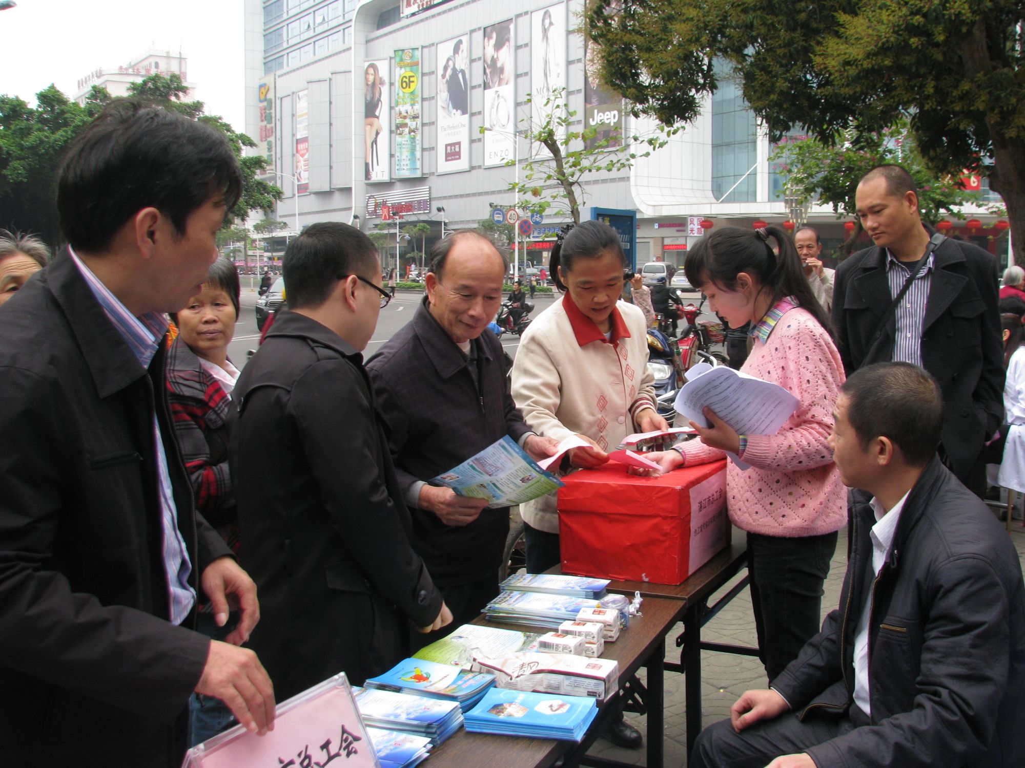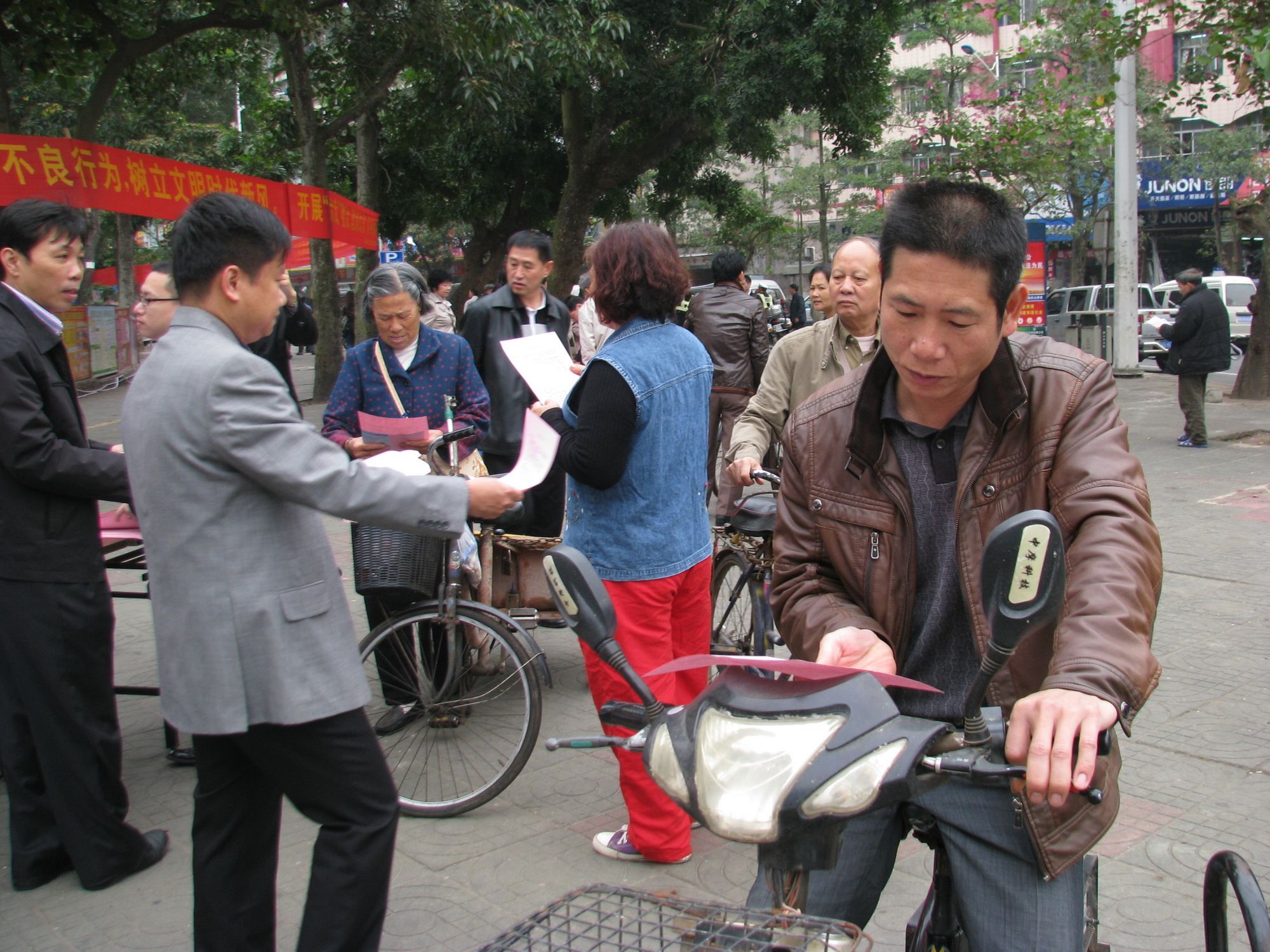 陈江泓副主席向过往的职工群众发放创卫倡议书