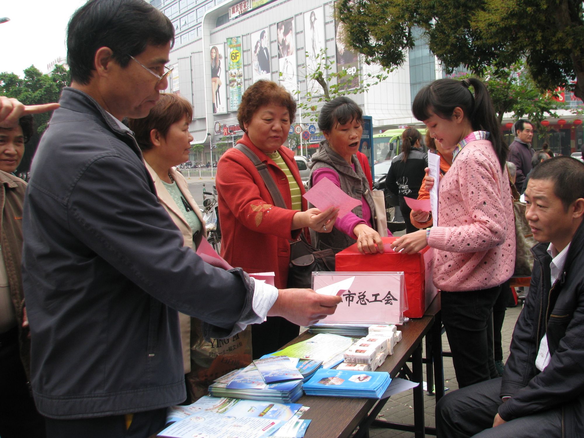 职工群众认真阅读市总工会发放的创卫倡议书